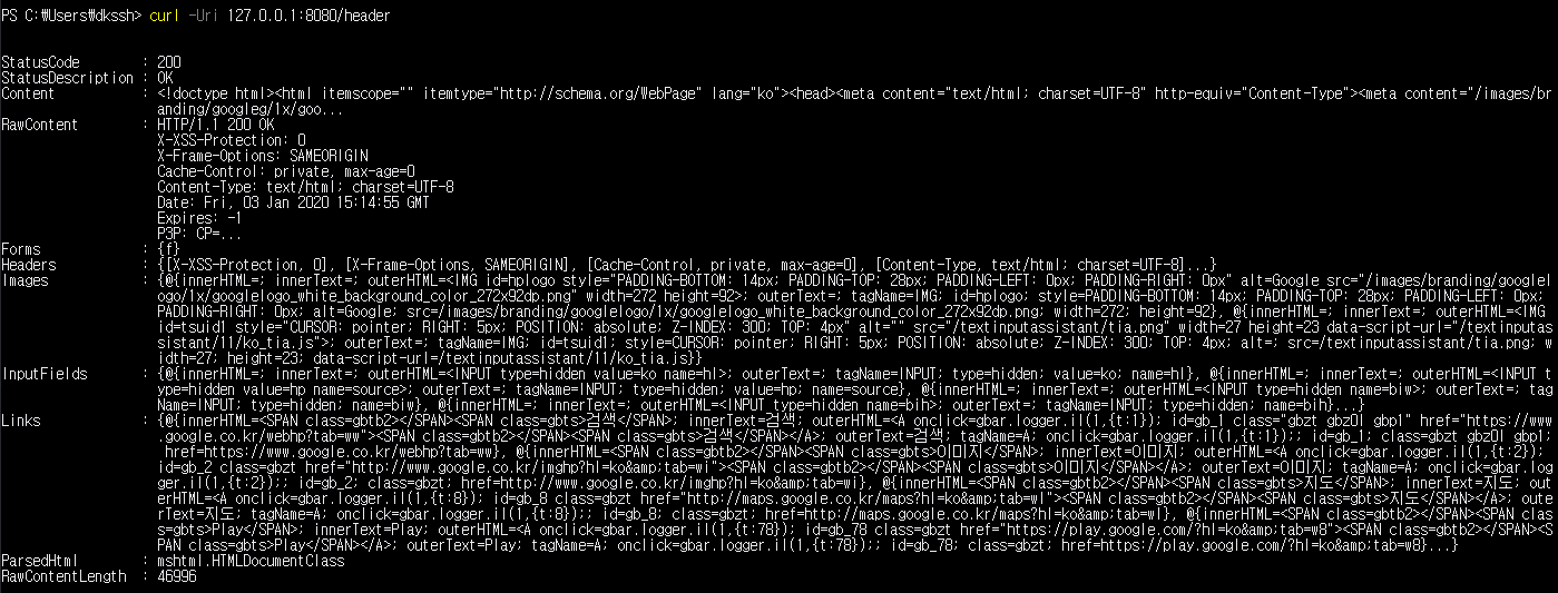 window powershell 에서는 501을 에러로 출력과 함께 작성한 메세지를 출력해준다.